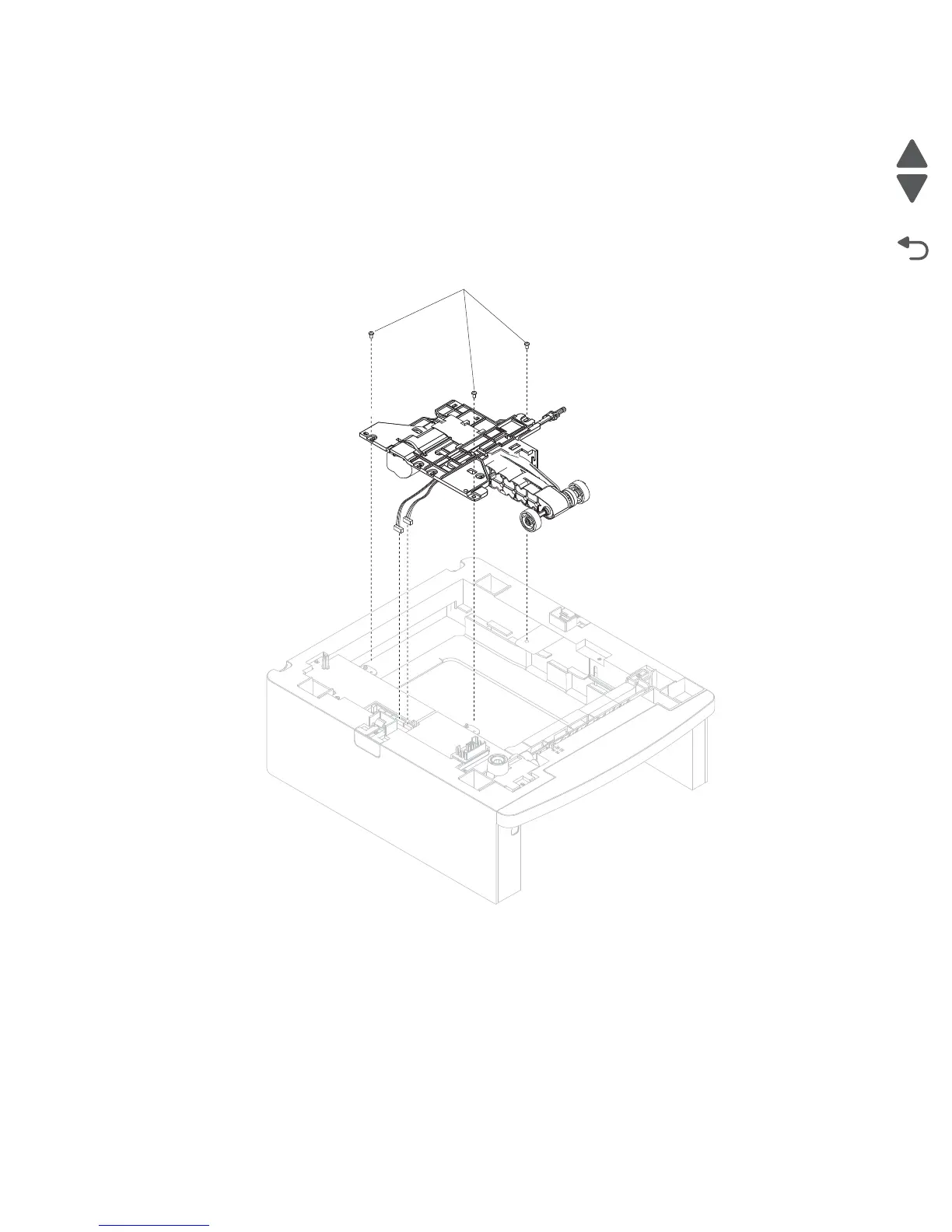 1. Remove the 550-sheet media tray assembly. See “550-sheet media tray assembly removal” on
