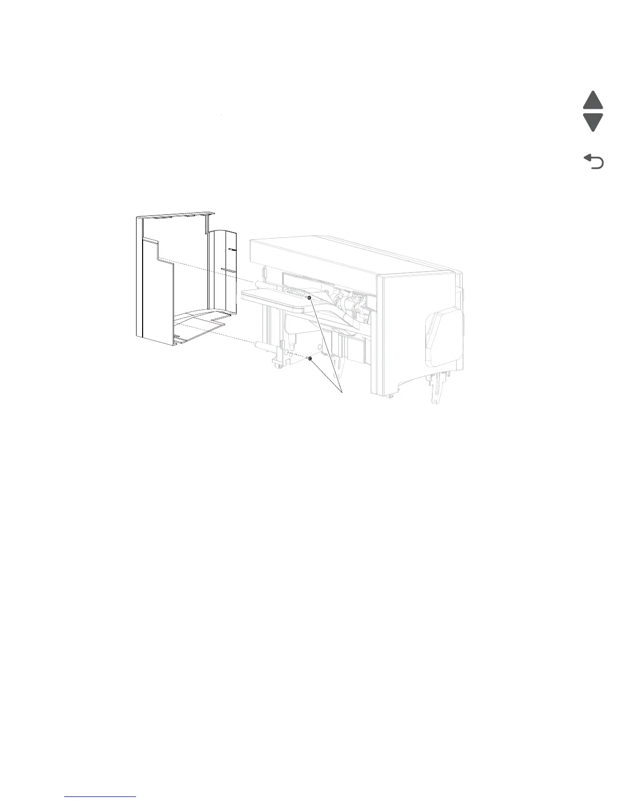 1. Remove the two screws (A) on the inside of the exit bin compartment securing the left cover.