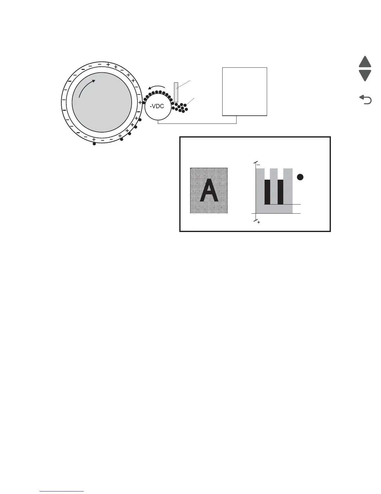 positive charge to the back of the printing paper. This positive charge transfers the negative charged toner