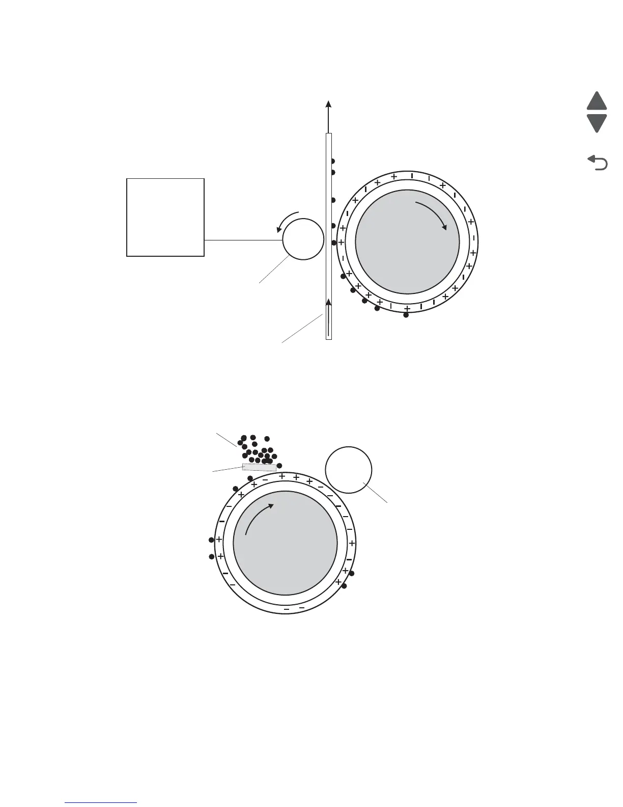 negative electrical charge of the inner conductive layer of the drum and the positive electrical charge of the