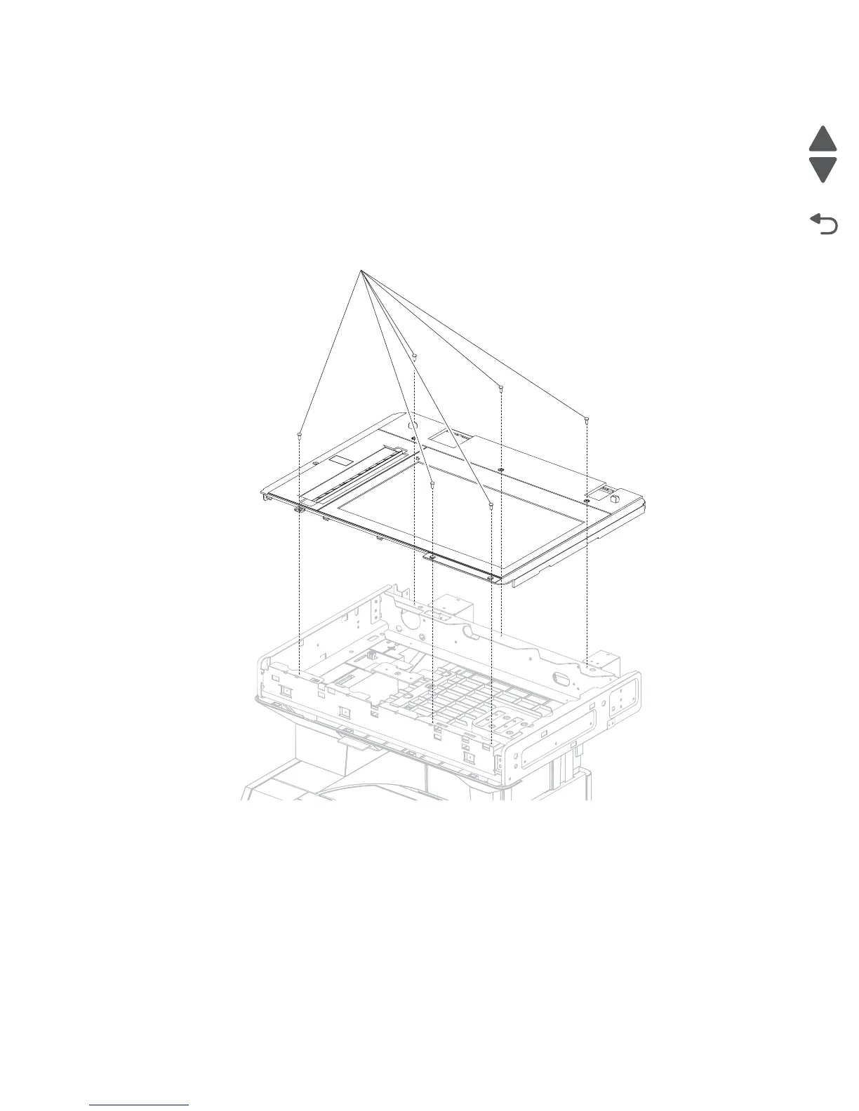 4. Remove six screws (A) securing the scanner platen glass cover to the assembly.