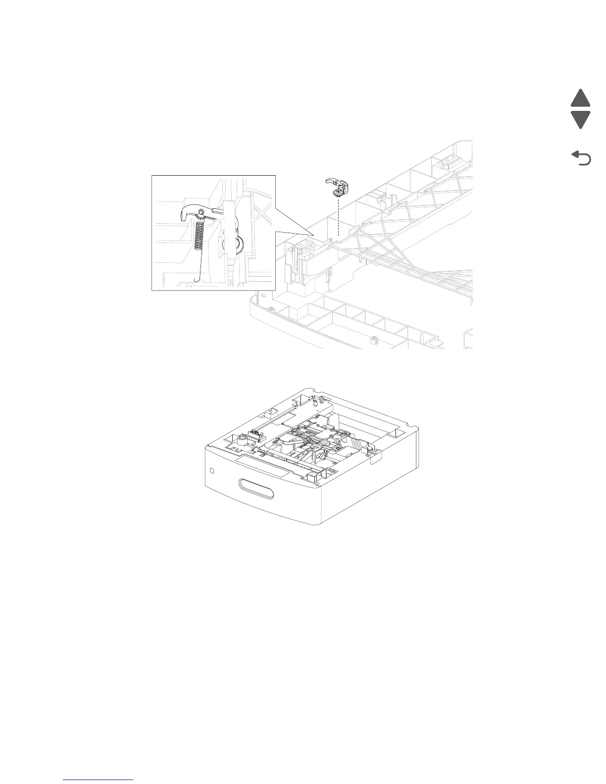 Lexmark X658DFE - Tray Roller Catch Assembly Removal; Media Tray Catch Spring Removal; Media Size Actuator Removal; 250 Sheet Controller Card Assembly Removal