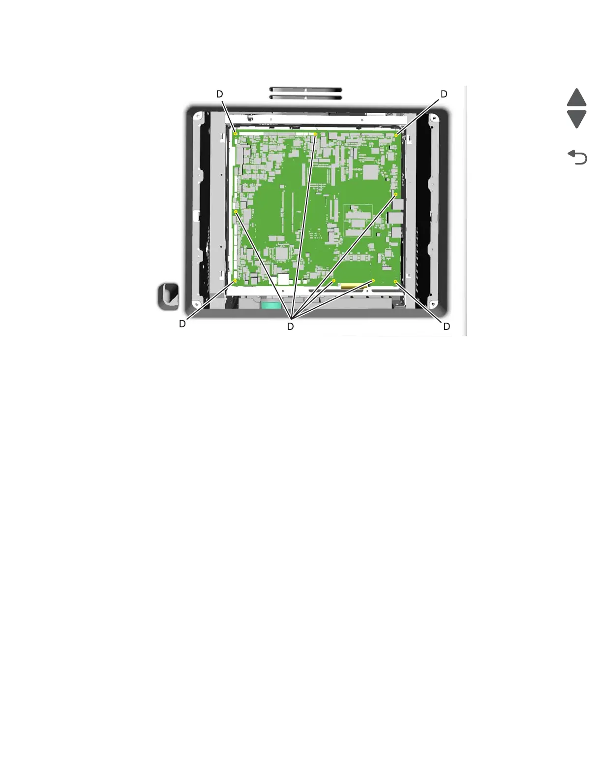 9. Remove the nine screws (D) from the system board.