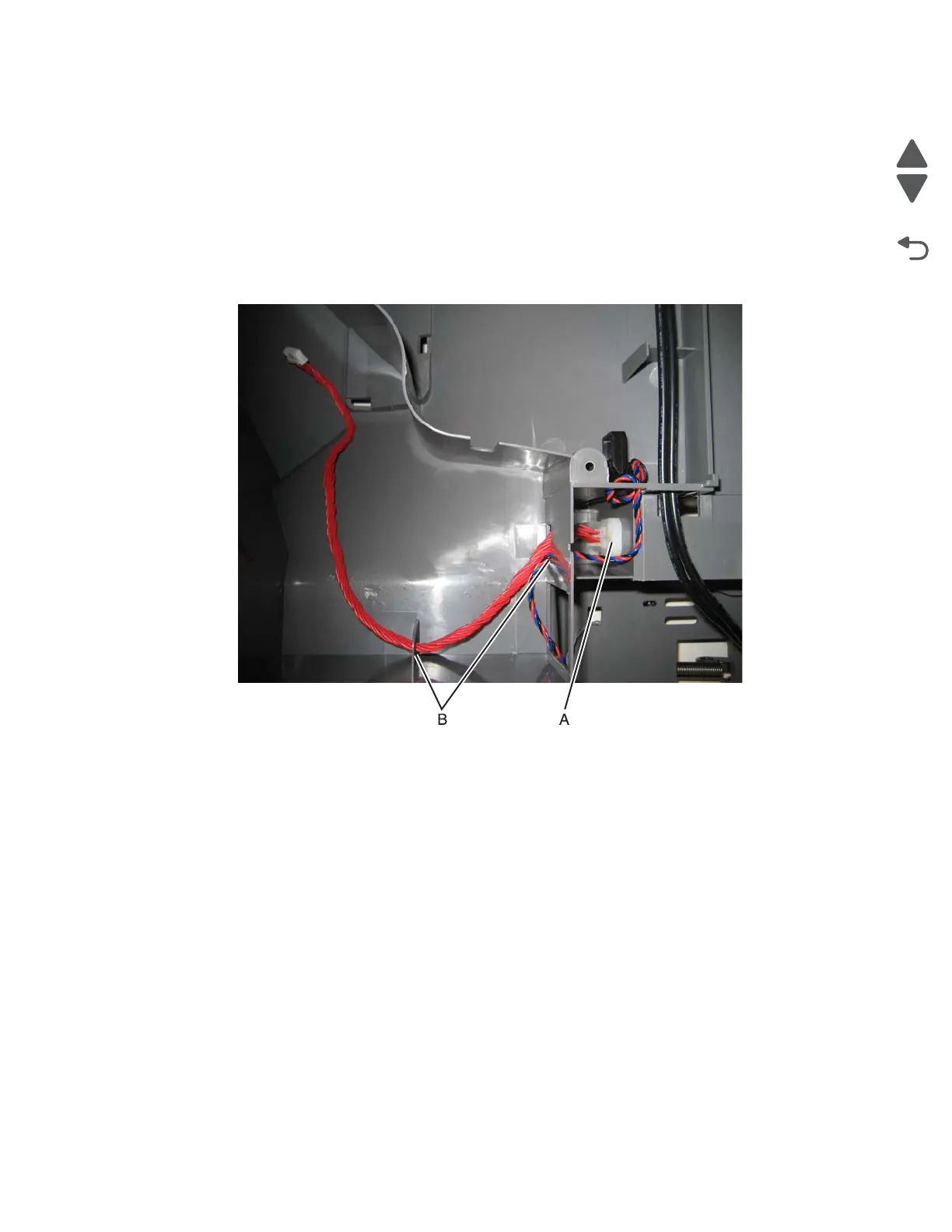 4. Pull the cable through the openings (B) in the top cover assembly.