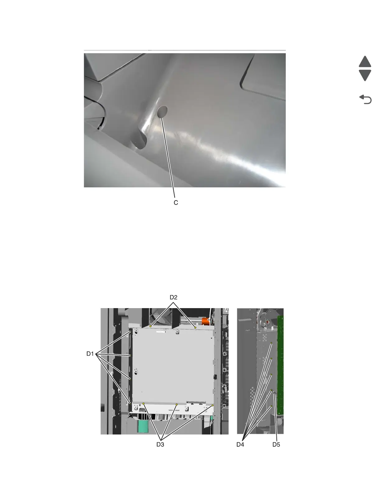 • Replace the five mounting screws (D4) to the outer left side of the printer.