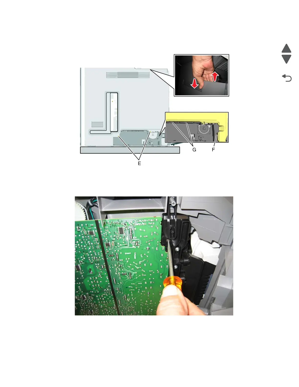 8. Grasp the side at the point shown, and disconnect the tab on the upper edge. Push down with your thumb
