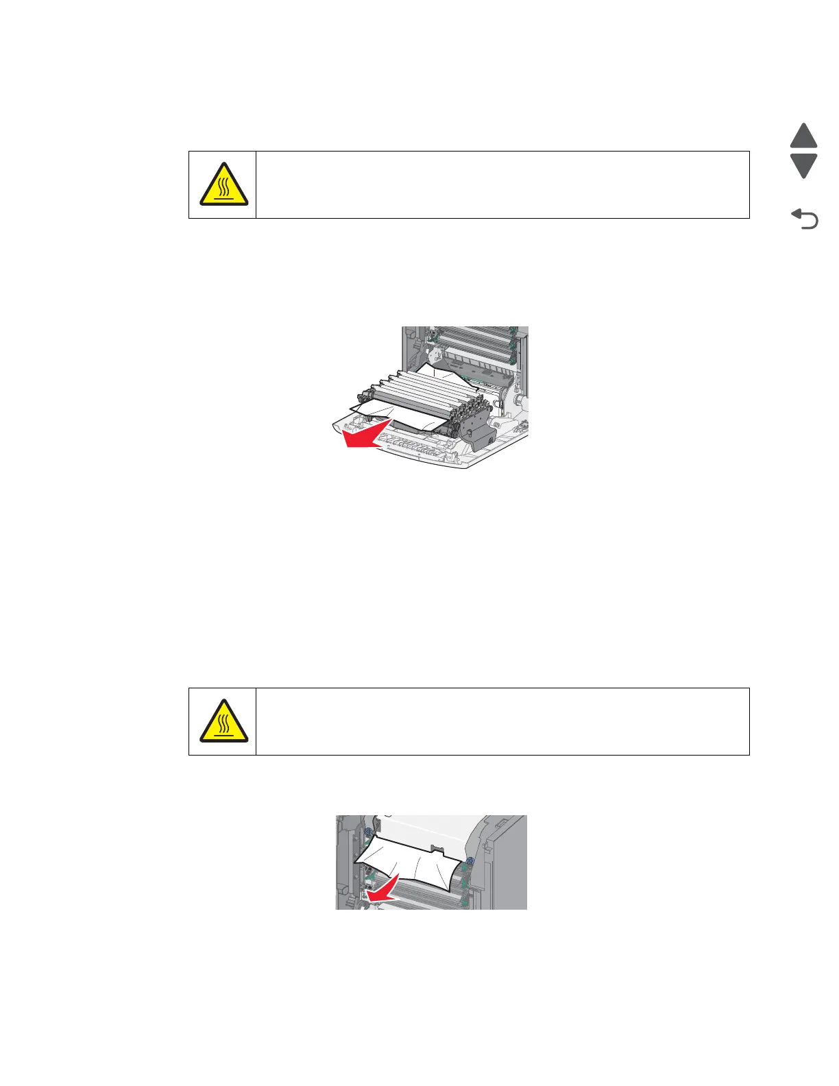 • If paper is visible under the fuser, then grasp it on each side and pull it.