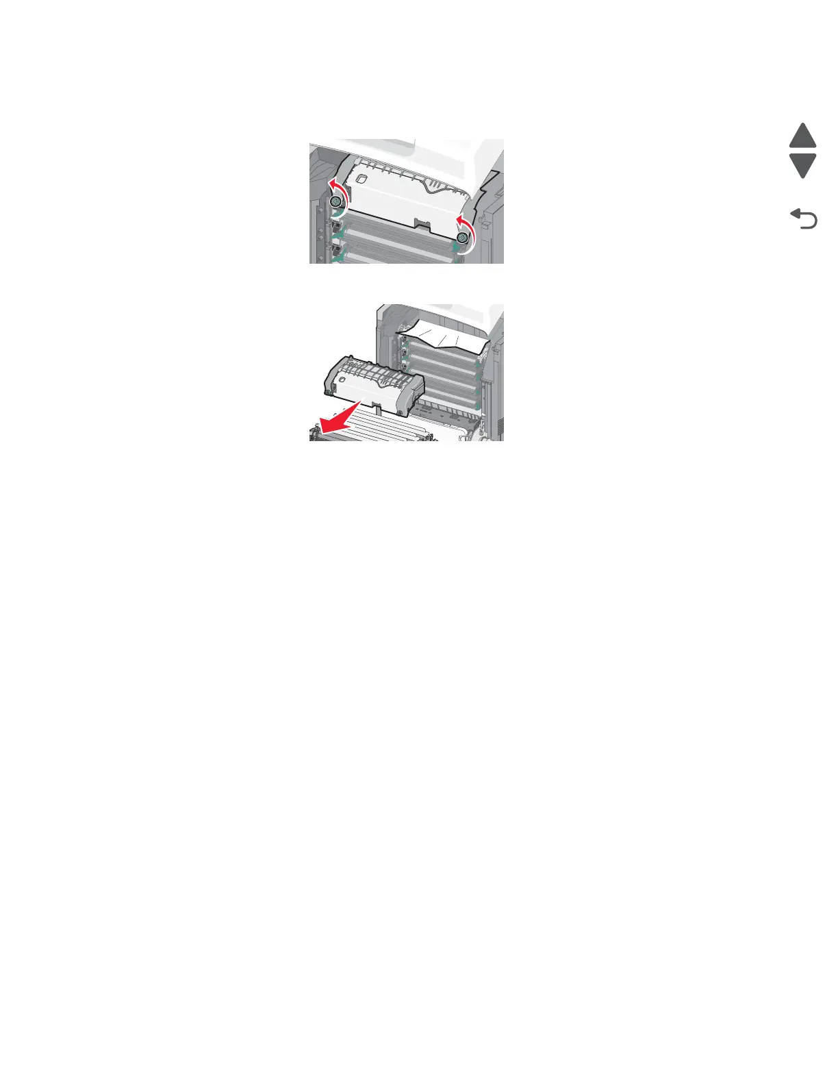 e. Replace the fuser, and then turn the screws to the right to fasten it securely.