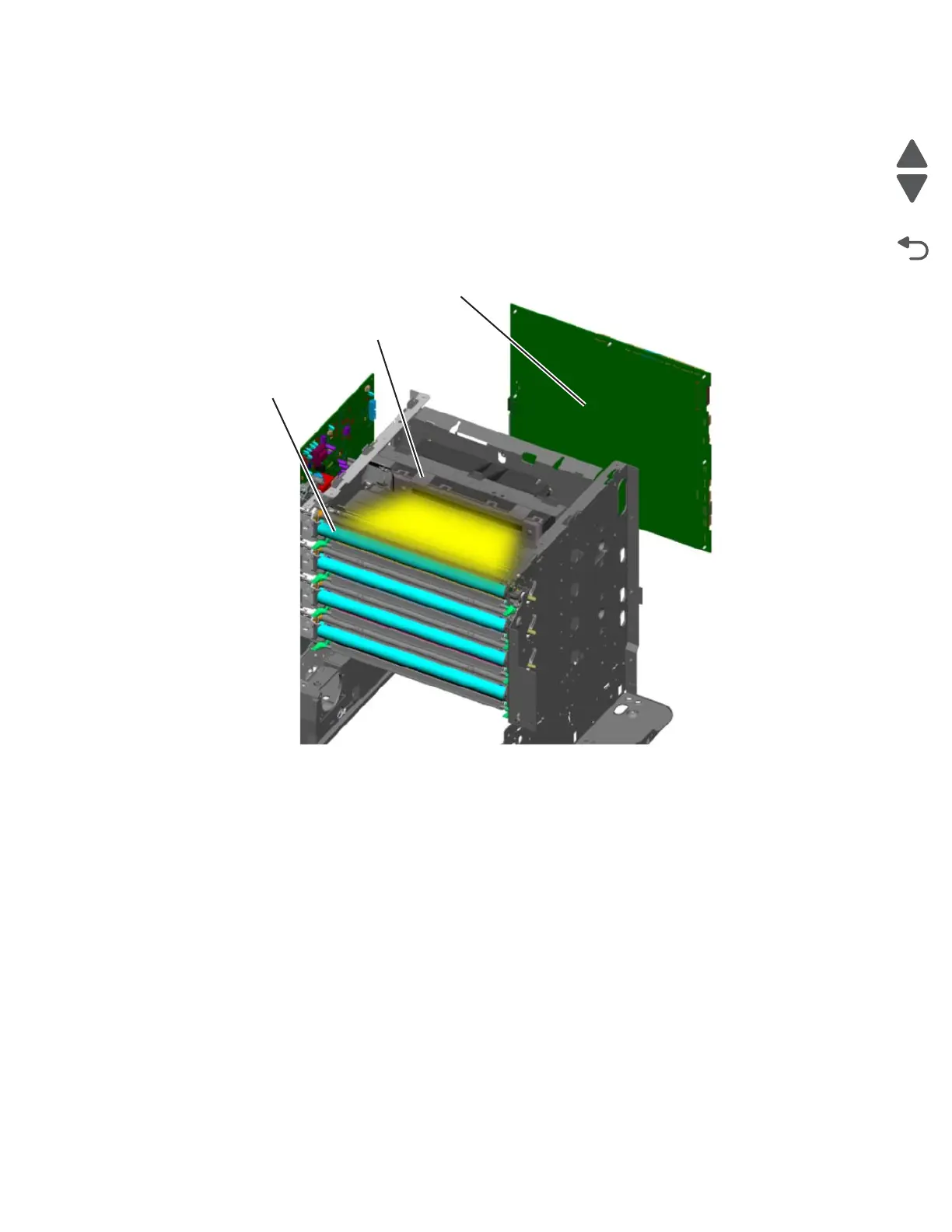 The main components in the exposure process are the system card, the printhead and the photoconductor unit.