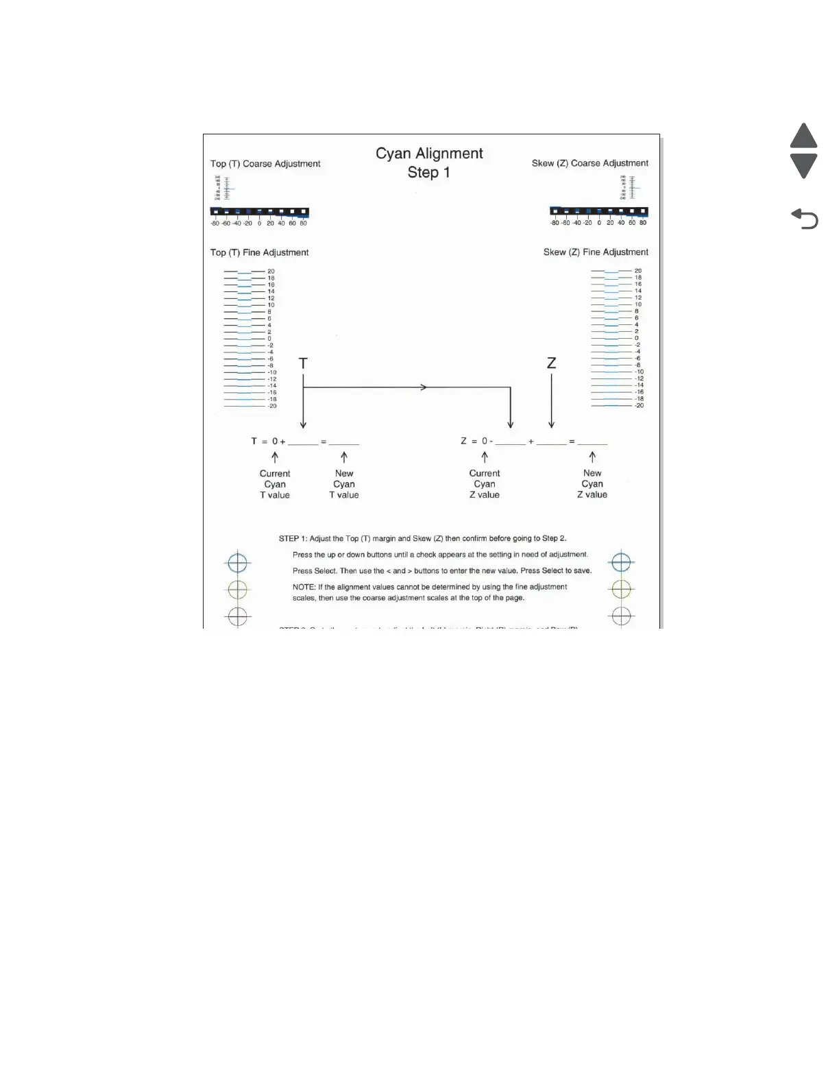 Z (Skew) aligned. Do not go to step 2 until T and Z are aligned. The first page is similar to the following: