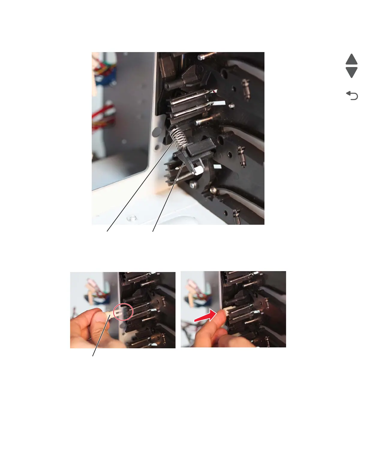 Note: Make sure to properly align the opening on the spring compression tool to the rib on the cartridge