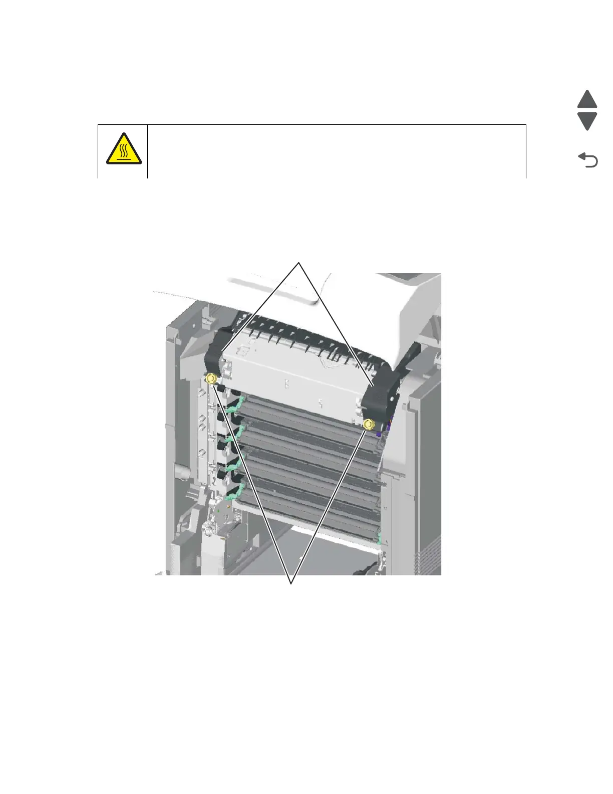 The inside of the printer might be hot. To reduce the risk of injury from a hot component, allow