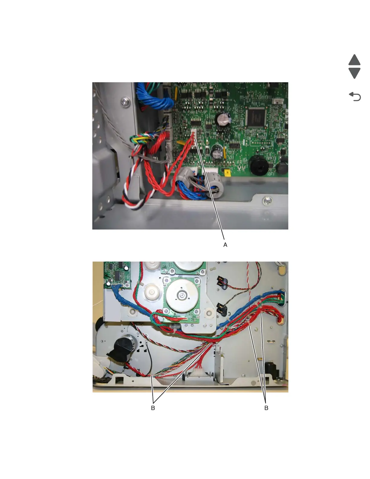 3. Remove the cable from the cable retainers (B).