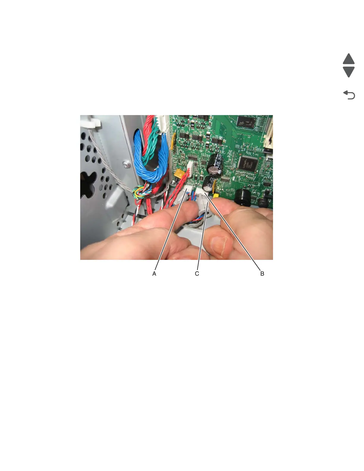 5. Open the latch (C) to remove the toroids from the cables.