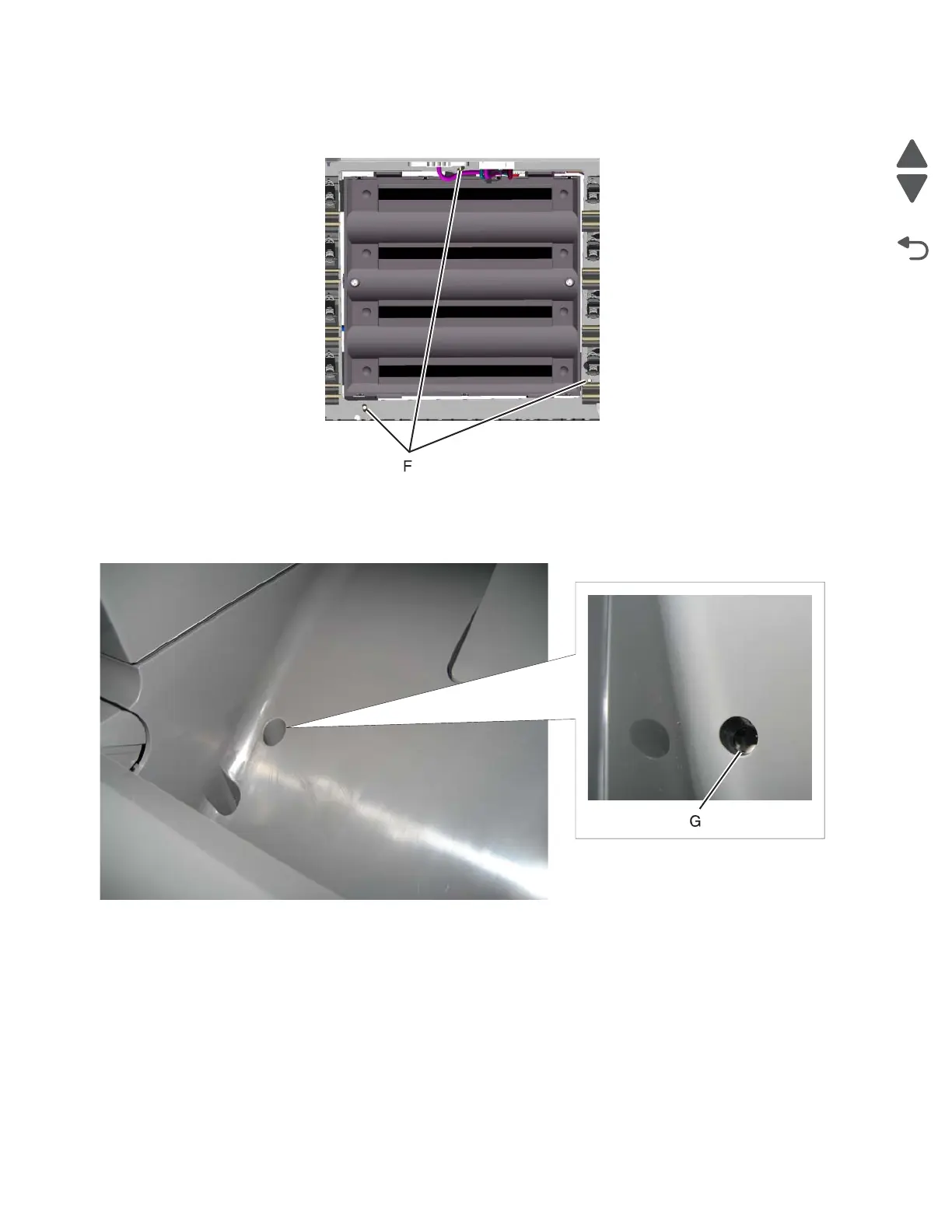 a. Remove the printhead mounting screws (F).
