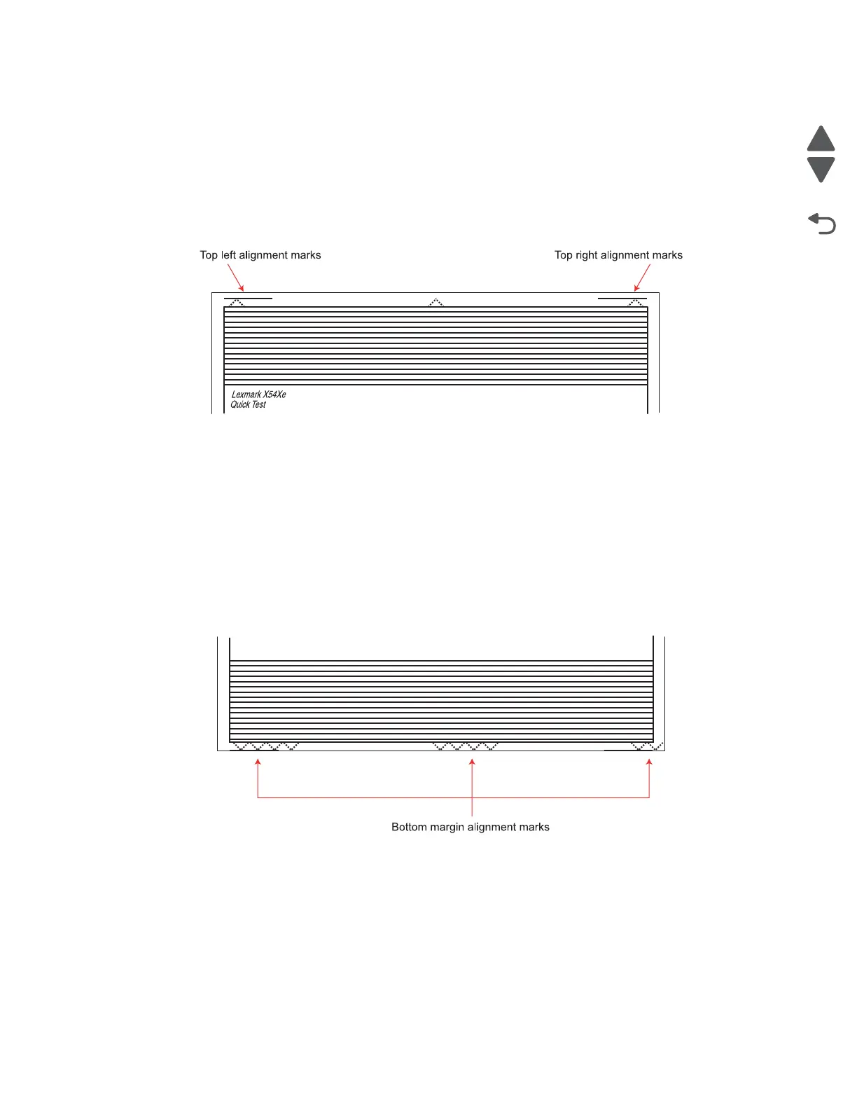 6. Print the Quick Test page, and check the top alignment marks. Repeat adjustment of the top margin and