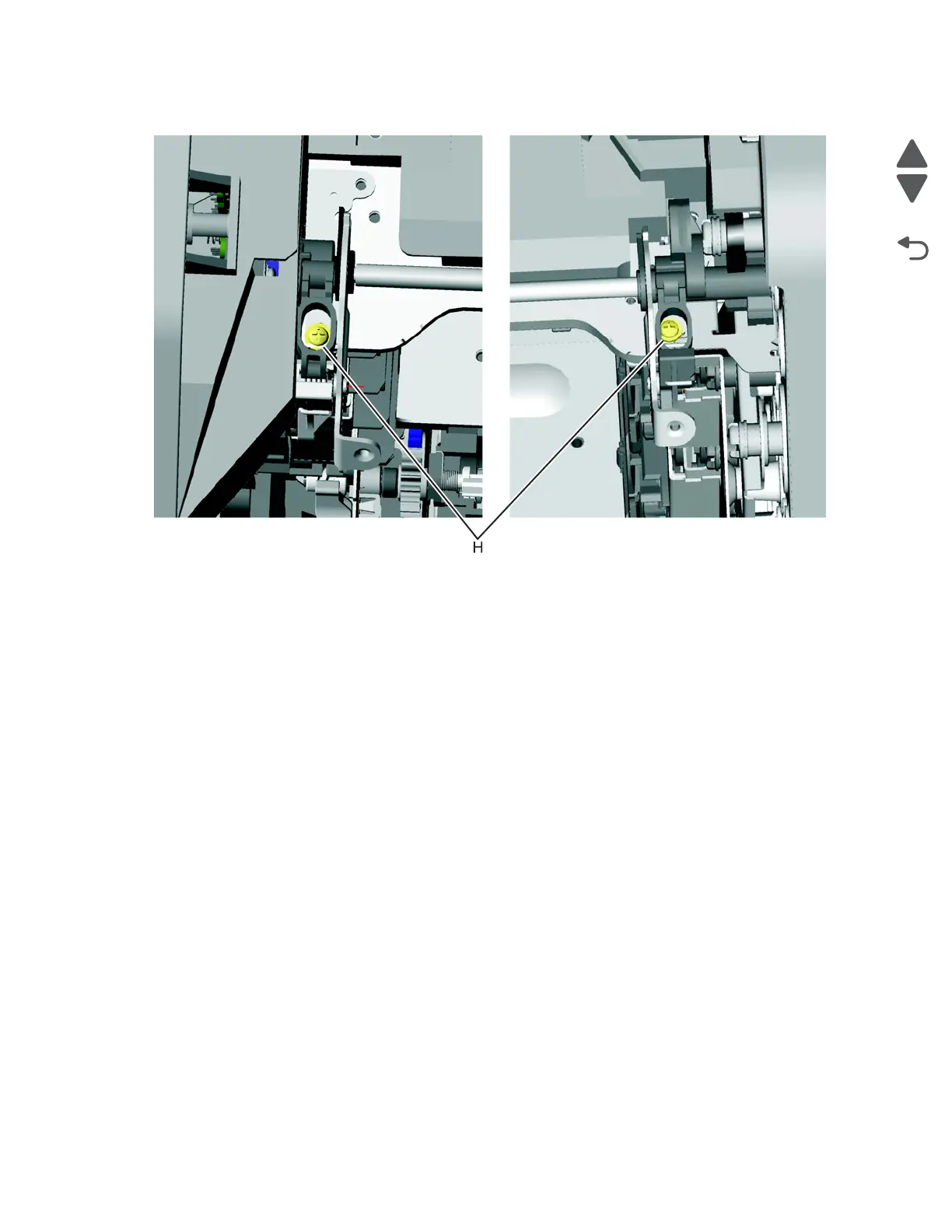5. Rotate the camshaft using the camshaft actuator handle, and replace the two screws (H).