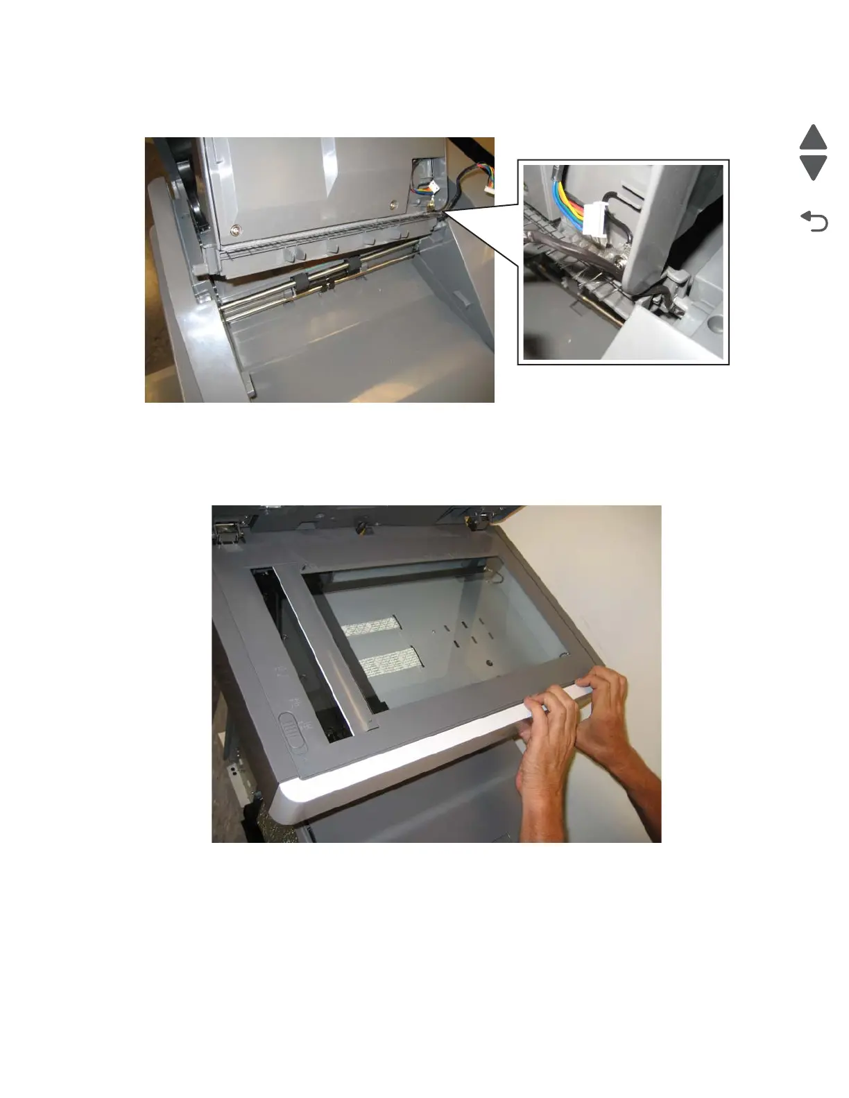 2. Grasp the front cover and the top right, and pull to remove the scanner front cover.