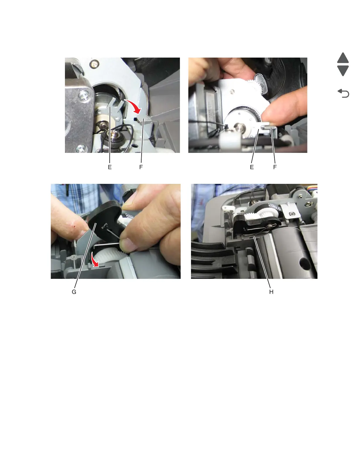 4. Slide the right side of the ADF motor gear train assembly into place, making sure that the fork (E) engages