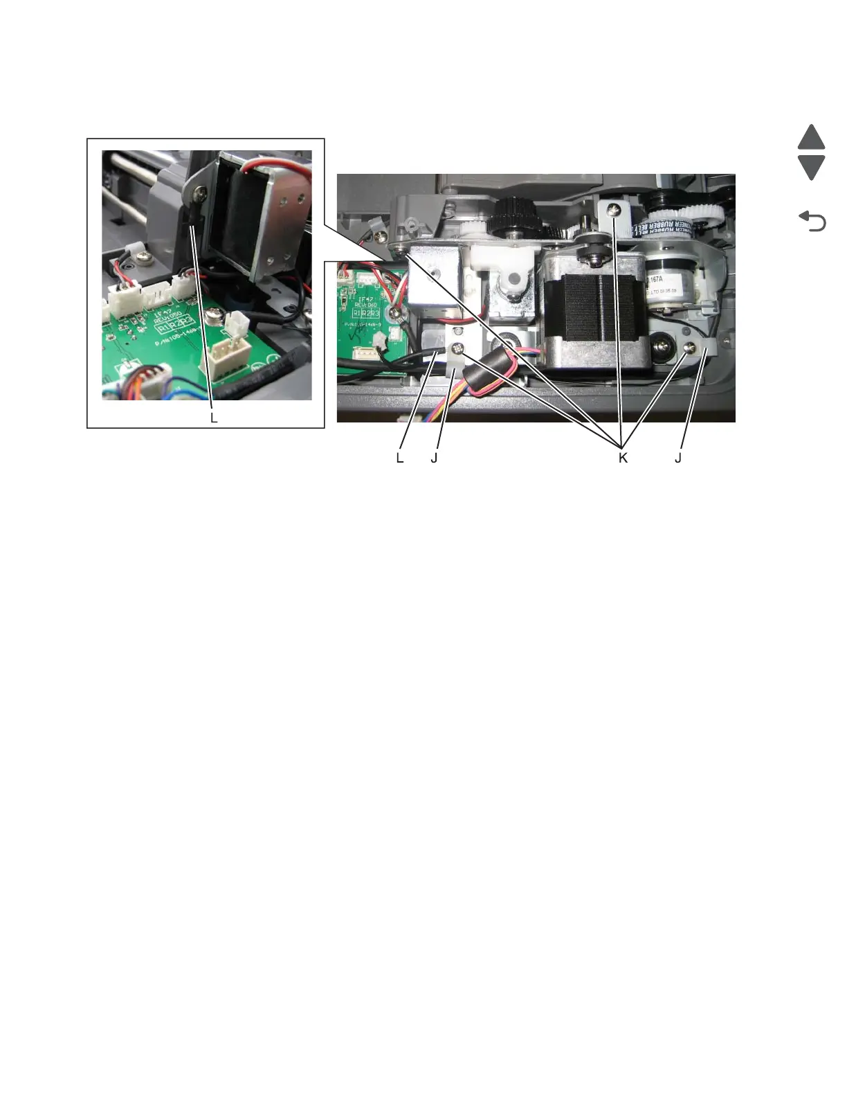 7. Replace the four screws (K), making sure that the ground cable (L) is attached to the indicated screw.
