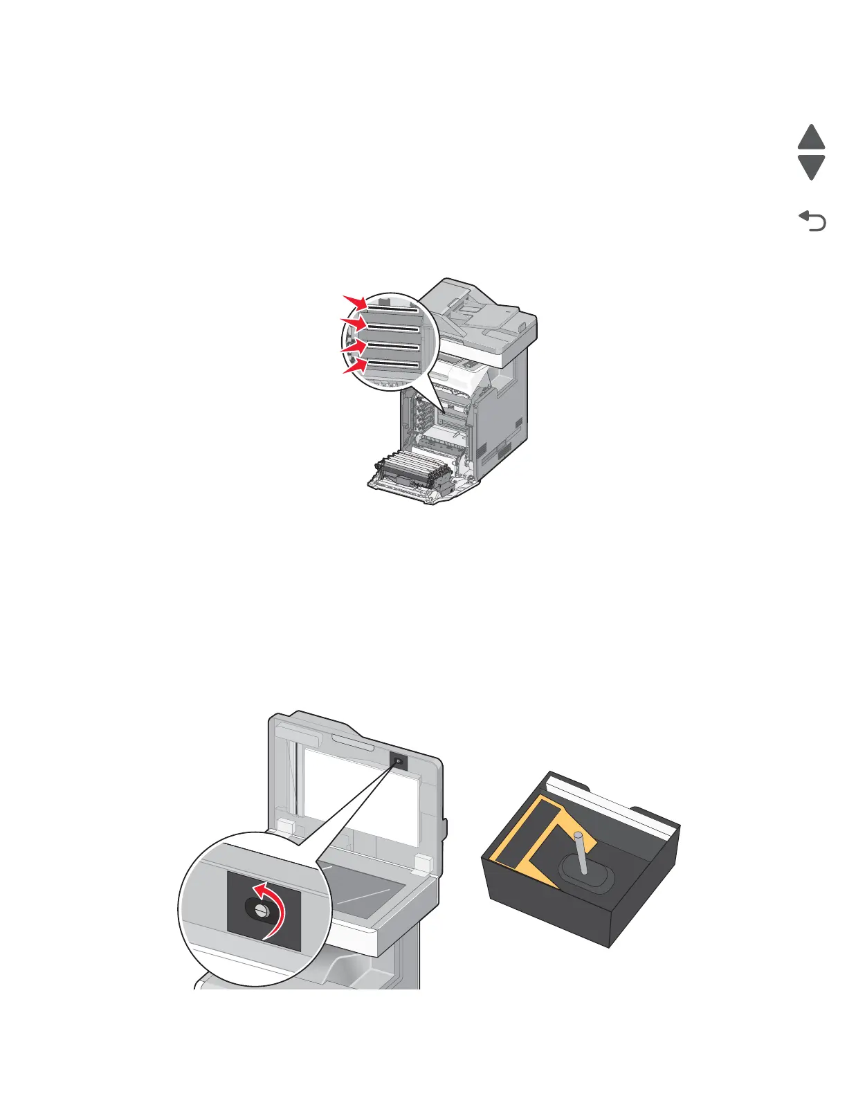 3. Remove all four toner cartridges. Do not remove the photoconductors for this procedure.