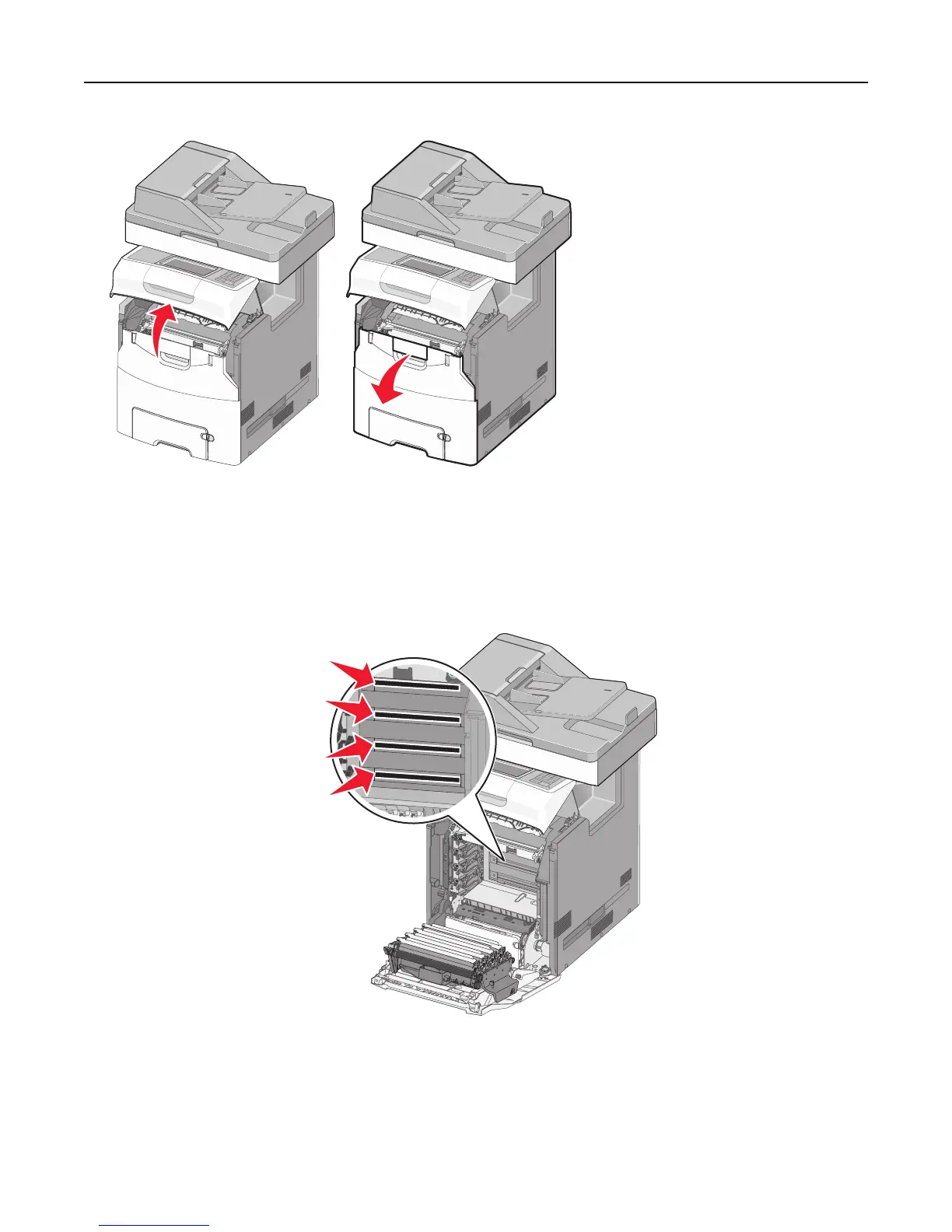 Warning—Potential Damage: To avoid overexposing the photoconductors, do not leave the front door open for