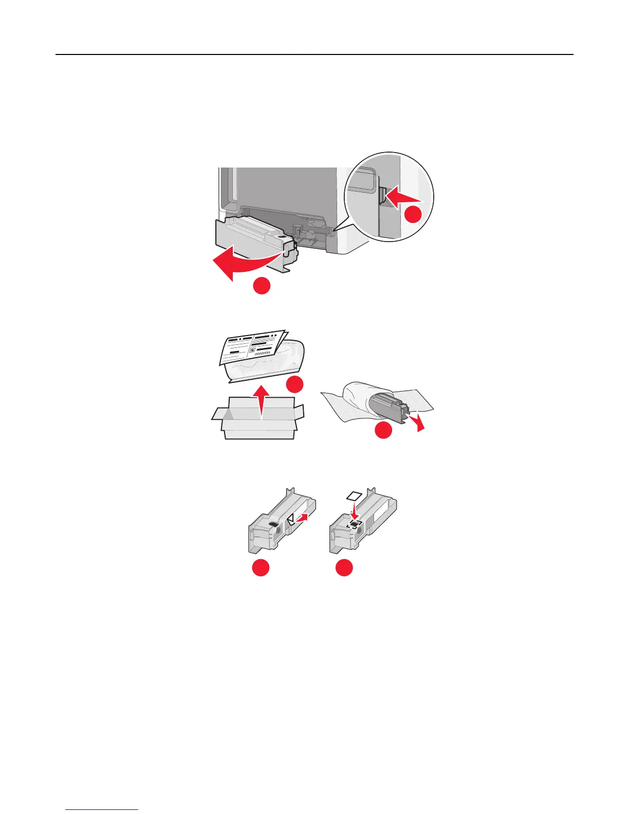 4 Peel the seal from the side of the full waste toner bottle, and then place it over the hole to seal off the waste toner