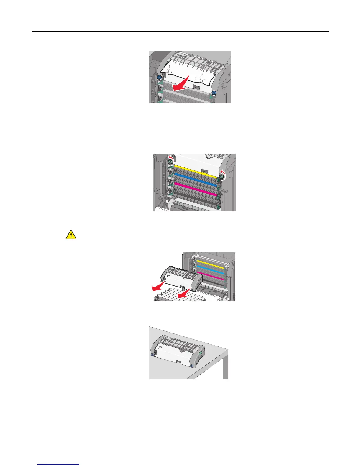 c If the jammed paper is not visible, then remove the fuser unit: