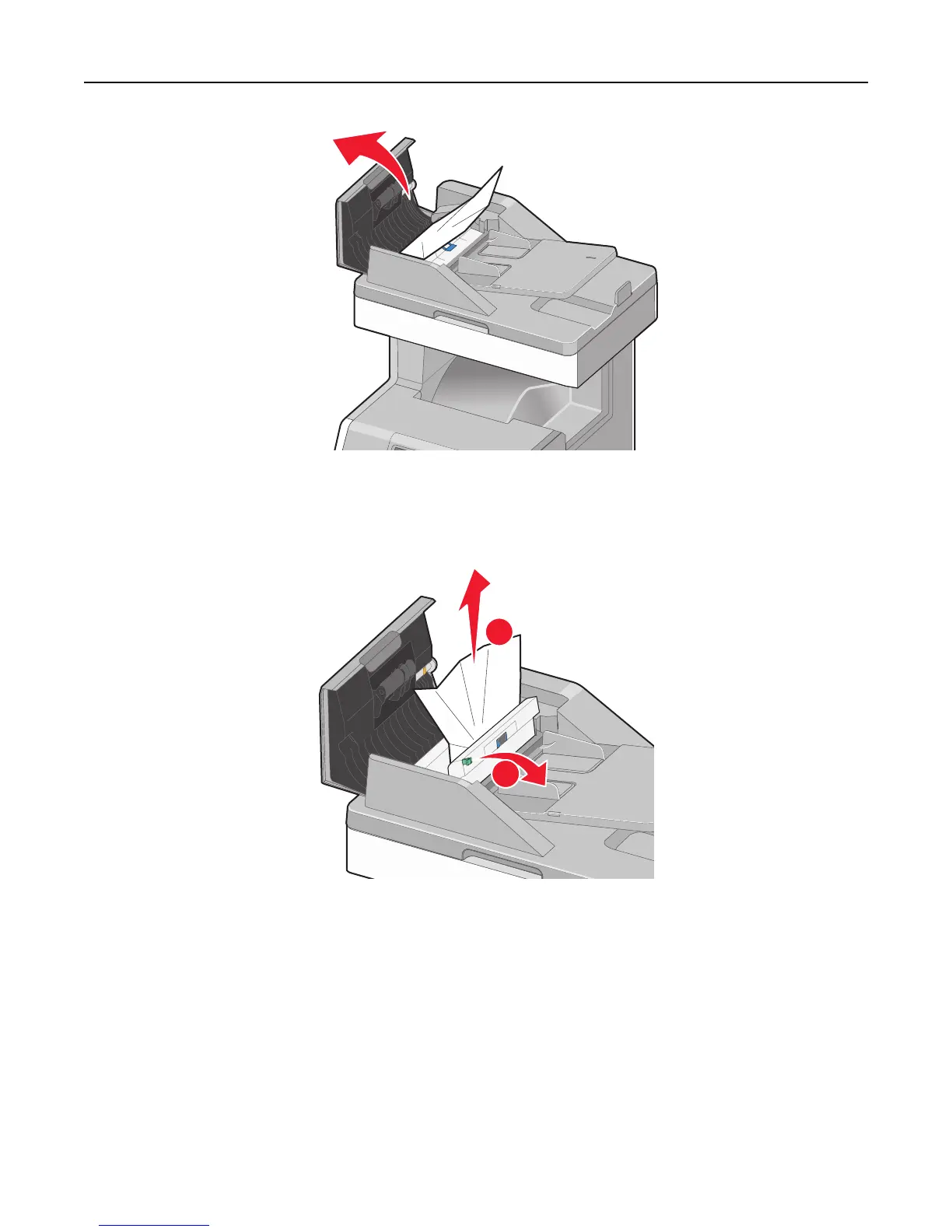 5 Open the scanner cover, firmly grasp the jammed paper on each side, and then gently pull it out.