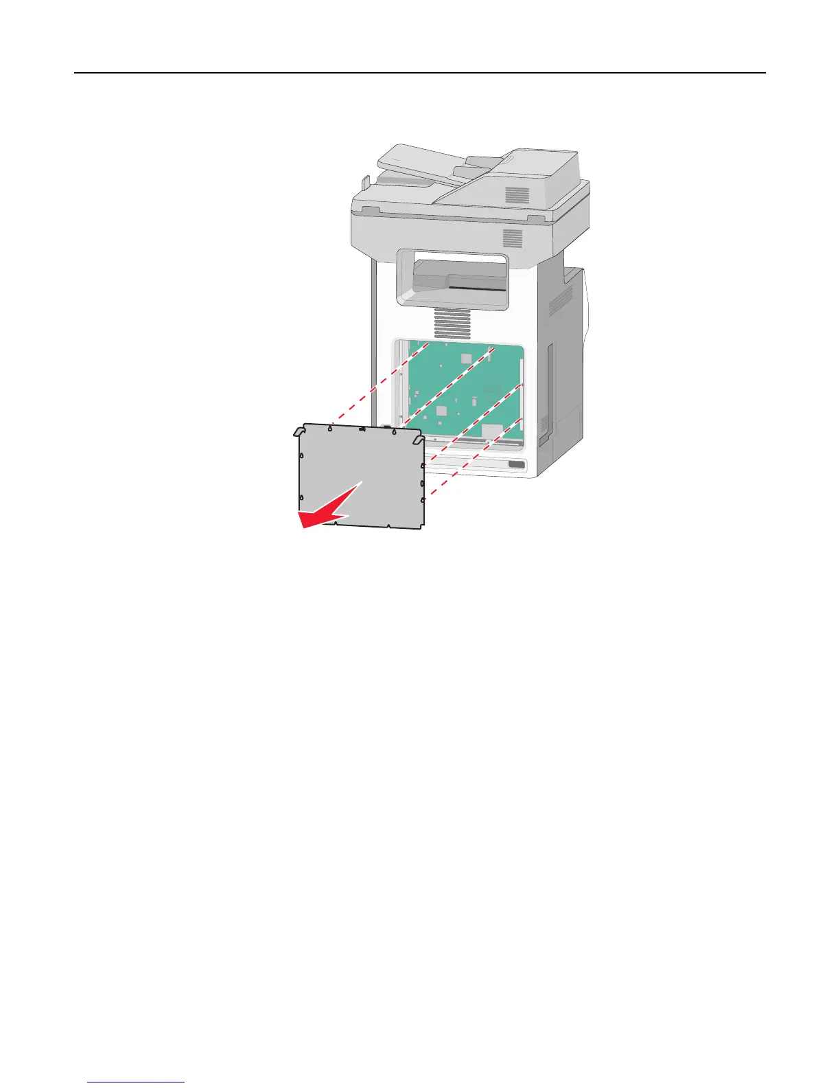 Touch something metal on the printer before touching any system board electronic components or connectors.