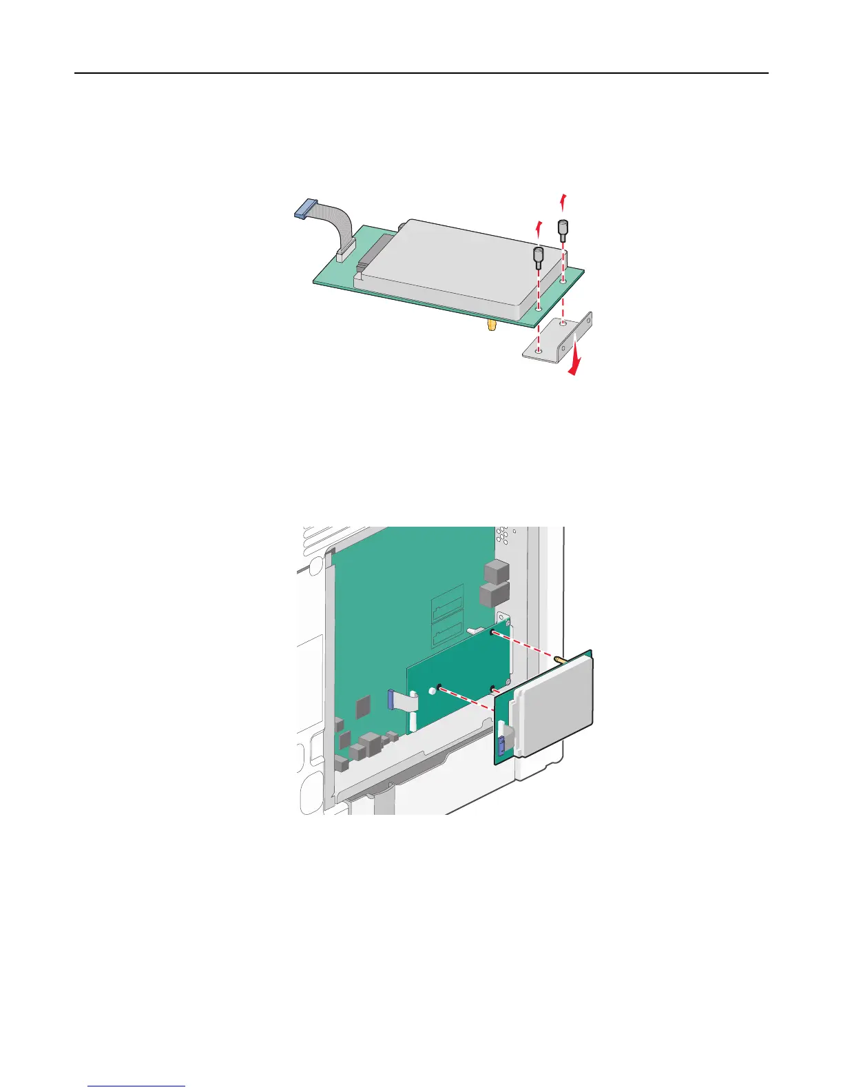 b Remove the screws attached to the printer hard disk mounting bracket, and then remove the bracket.