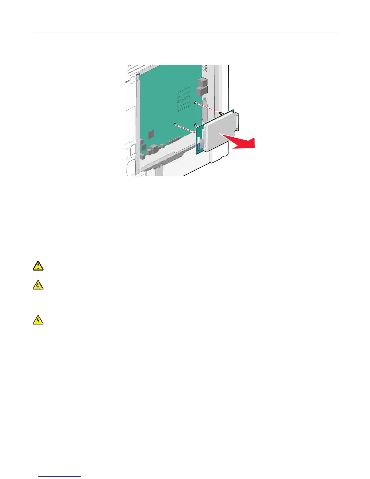 4 Remove the printer hard disk by pulling it upward to unseat the standoffs.