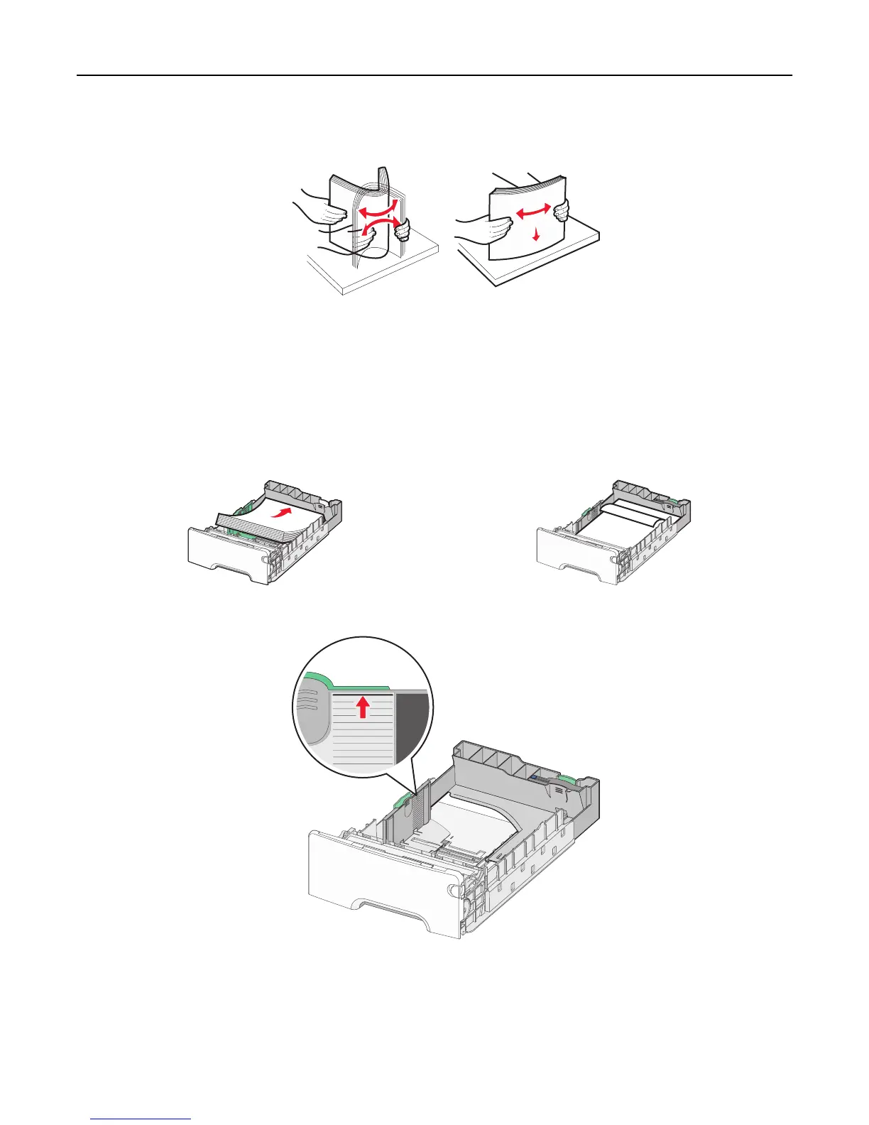 Note: Make sure paper does not exceed the maximum paper fill indicator located on the left side of the tray.