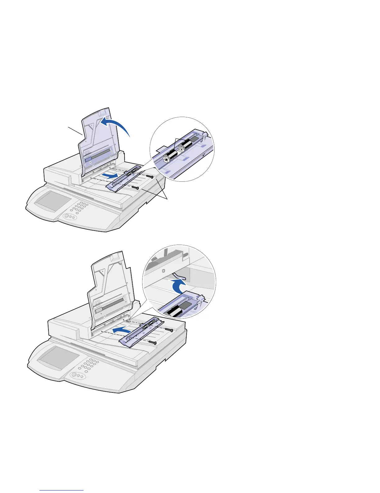 3 Baixe a placa dos rolos e puxe-a xe a placa dos rolos e puxe-a