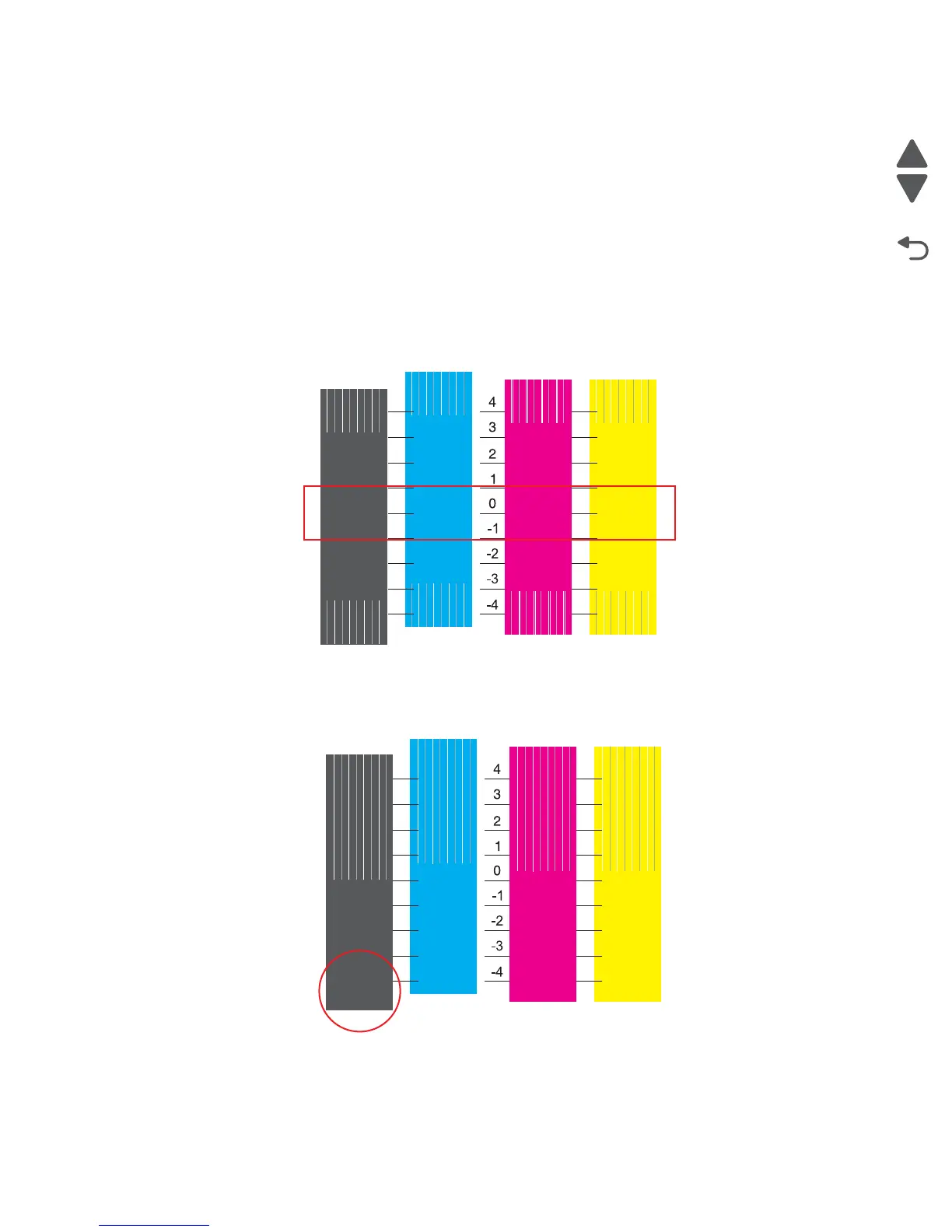 Example: The solid color area on the following test page is closer to -4 than 0. Enter -4 for the value to