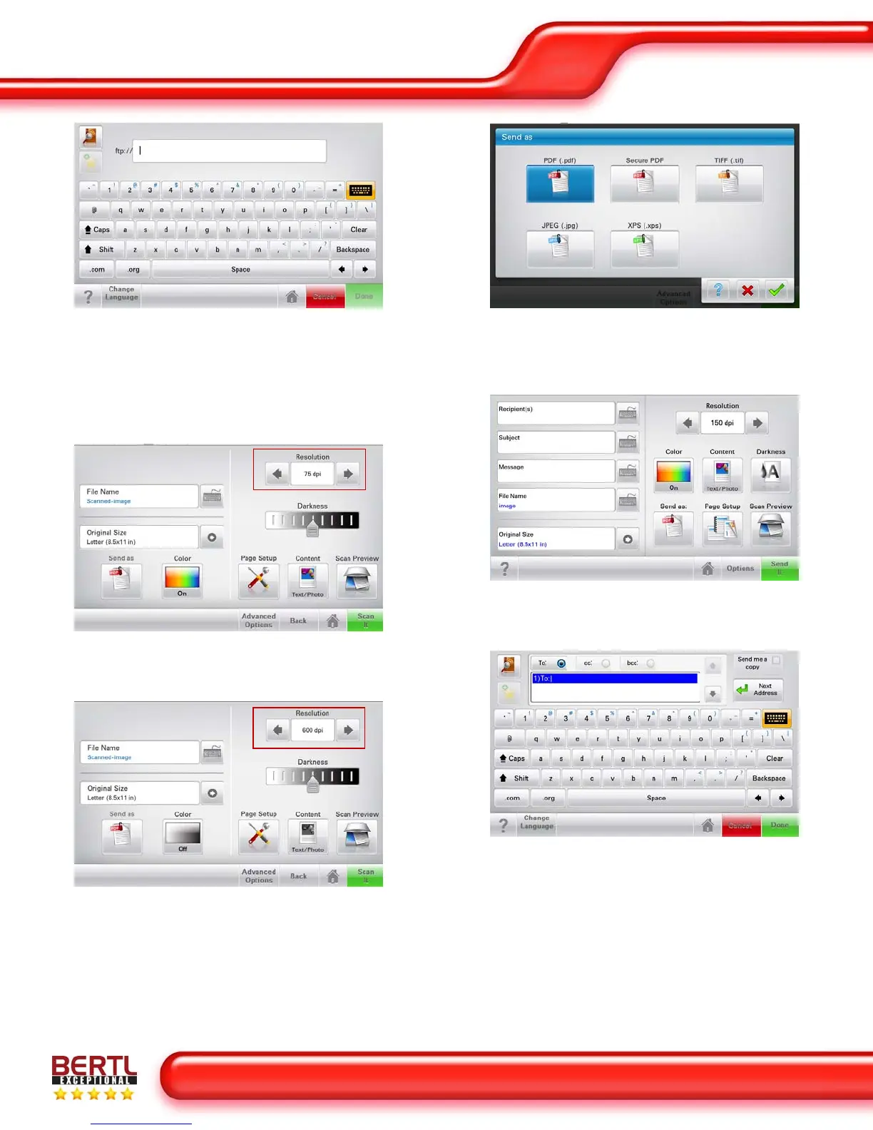 Sending a document to an FTP server is similar to sending