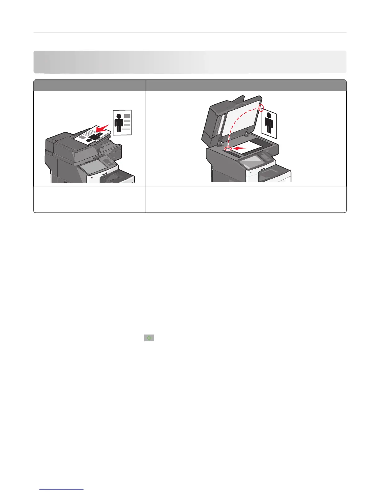 1 Load an original document faceup, short edge first into the ADF or facedown on the scanner glass.