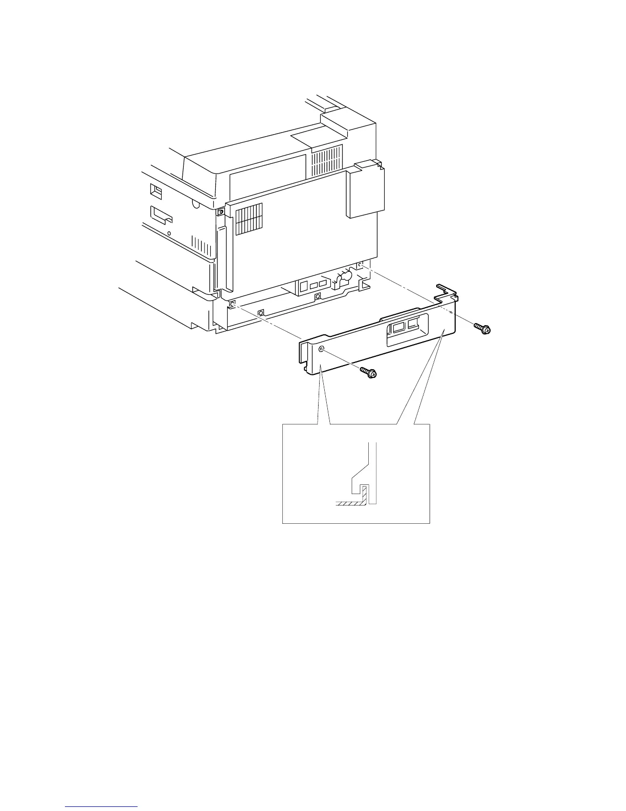 2. Remove the two screws securing the Rear Cover 1TM to the printer frame.