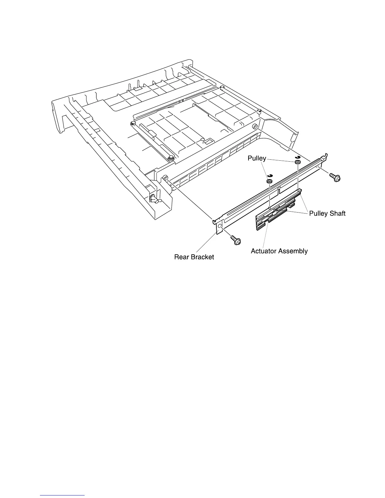 1. Reinstall the Actuator Assembly onto the rear of the paper tray, making sure the two