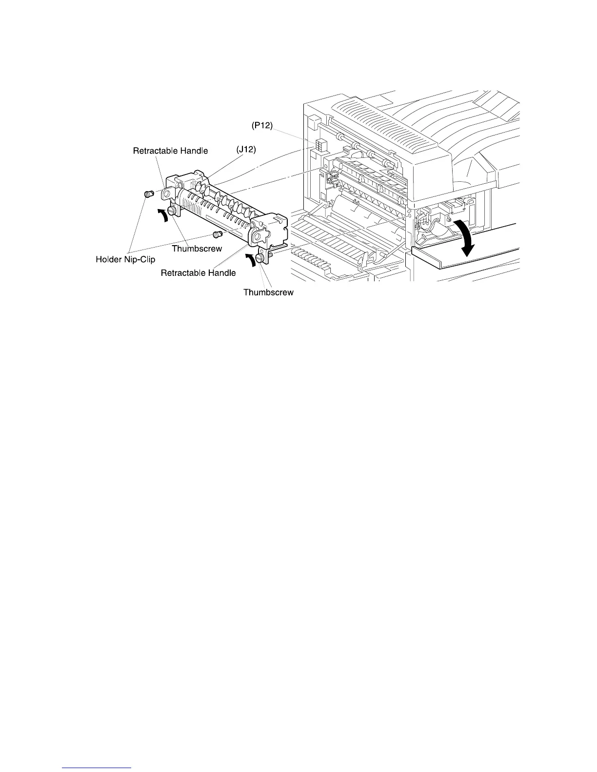 3. Pull out the handles that are located on each end of the Fuser Assembly.