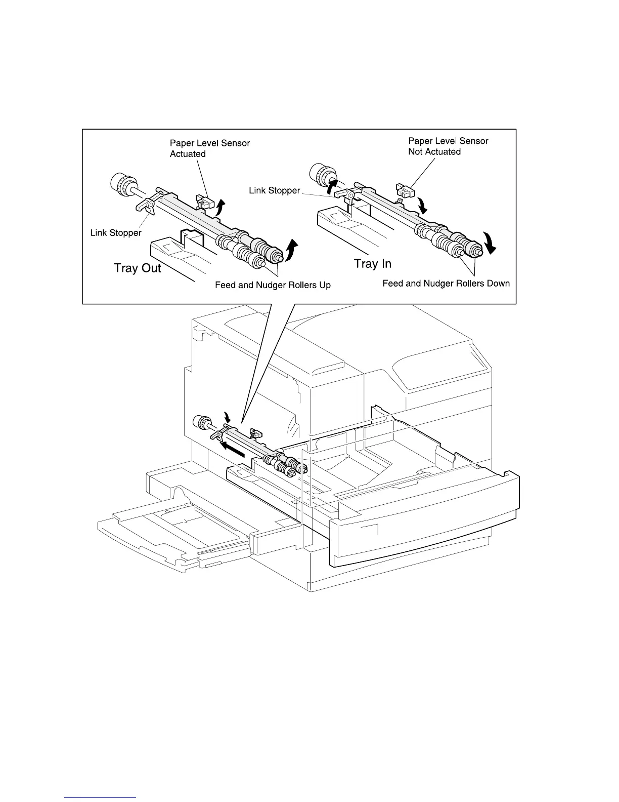 Monitors whether or not Tray 1 is installed. Installing the Tray pushes the Link