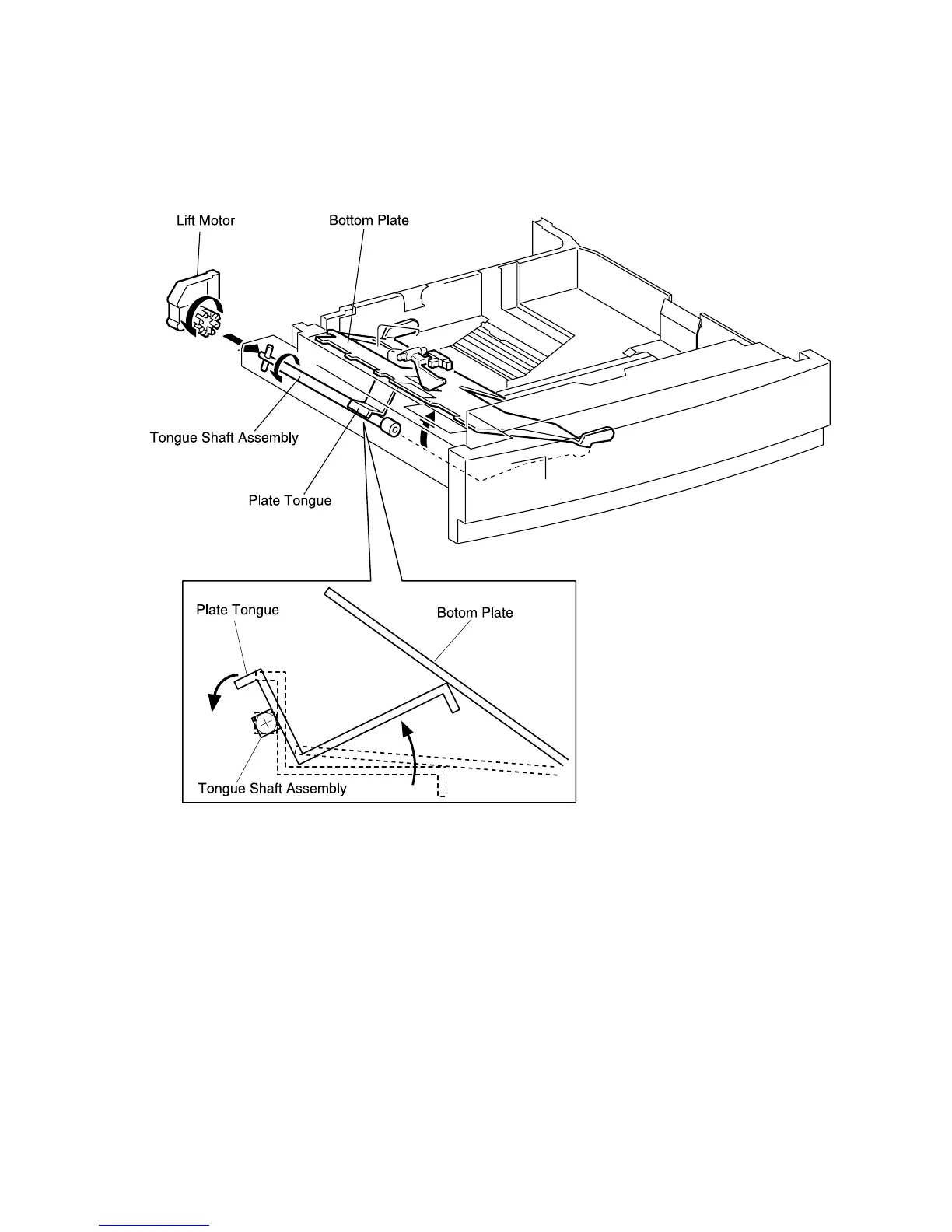 raises the Tongue, which in turn raises the Bottom Plate, and the paper stack, up to