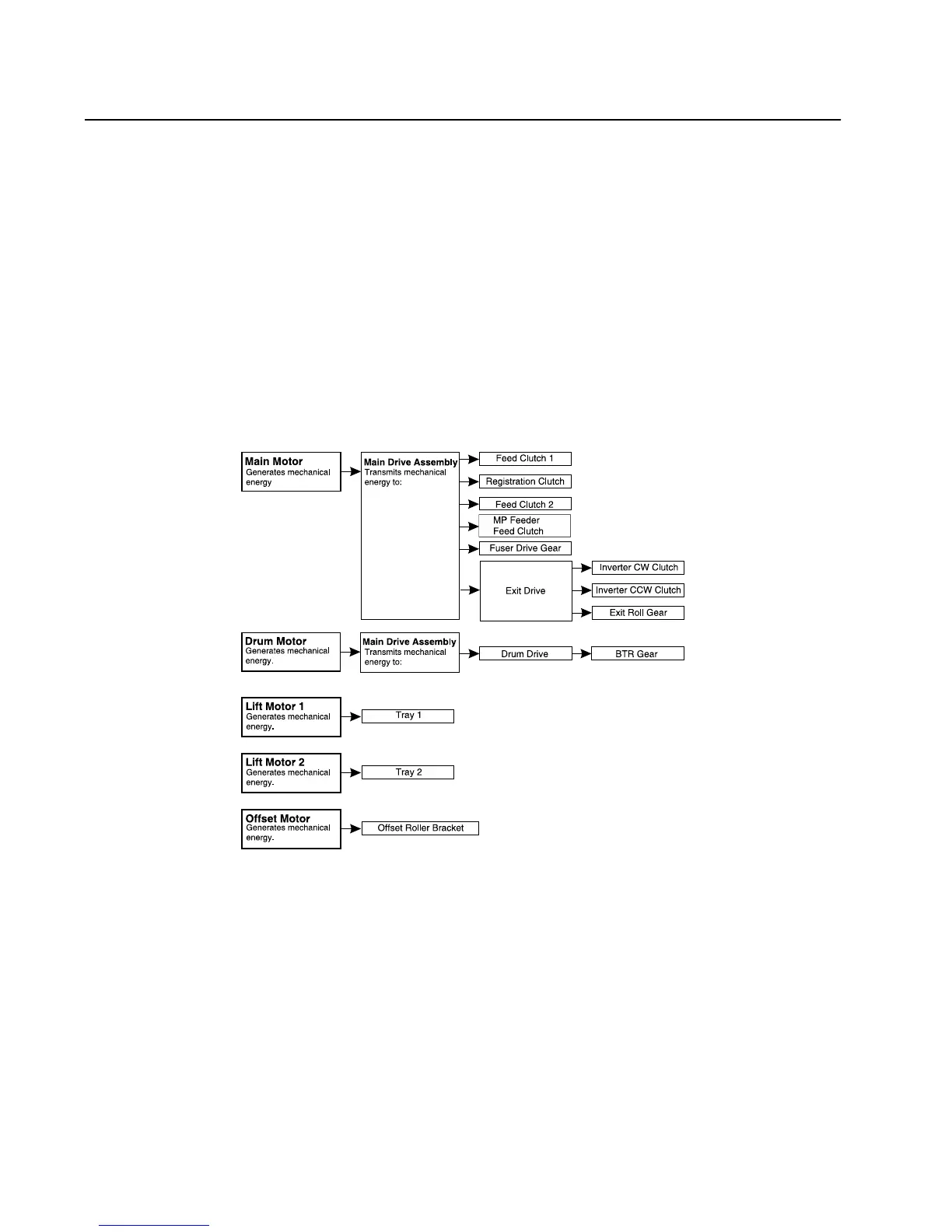 Exit Clutches. The Drum Motor and Drive Assembly provide drive to the Drum and BTR.