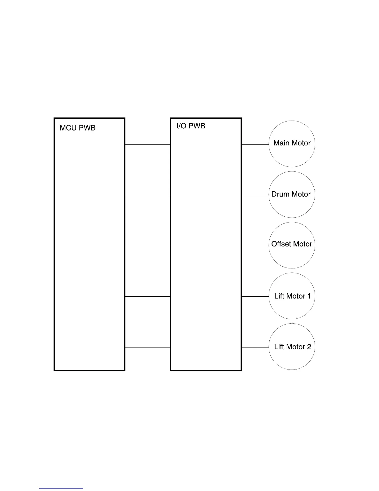 The I/O PWB provides power to the Main Motor, Drum Motor, the Lift Motors, and the