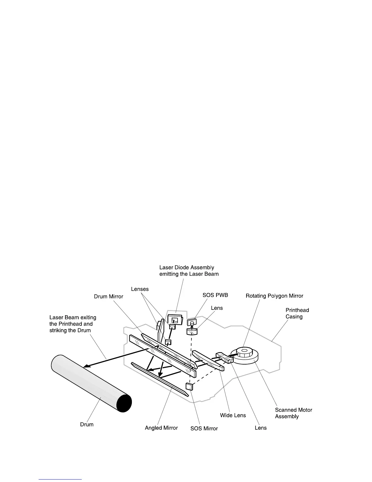 opposite corner of the Printhead Assembly. Each sweep of the laser beam begins by