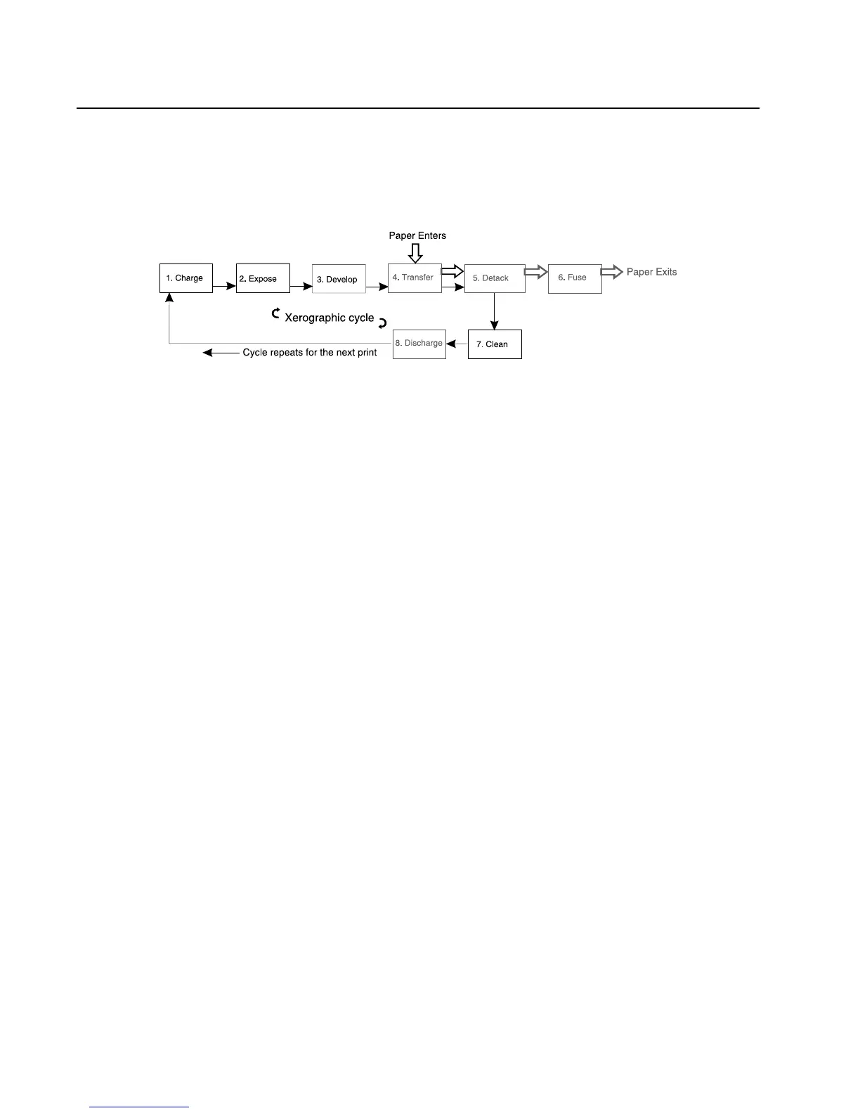 The seven Xerographic steps (Step 6 Fuse is not part of the Xerographic cycle) in the