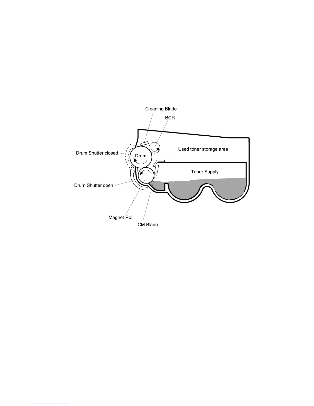 printer or the Left Upper Cover is open, the Drum Shutter closes.
