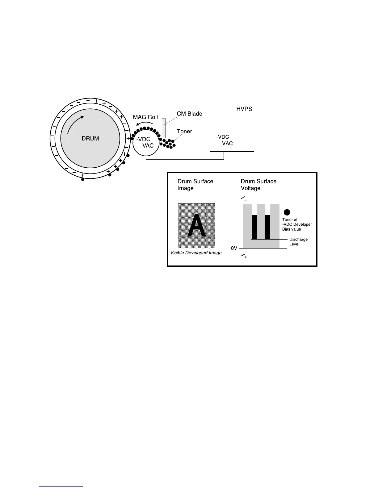 Magnet Roll to that point on the drum. There is now a visible toner image on the