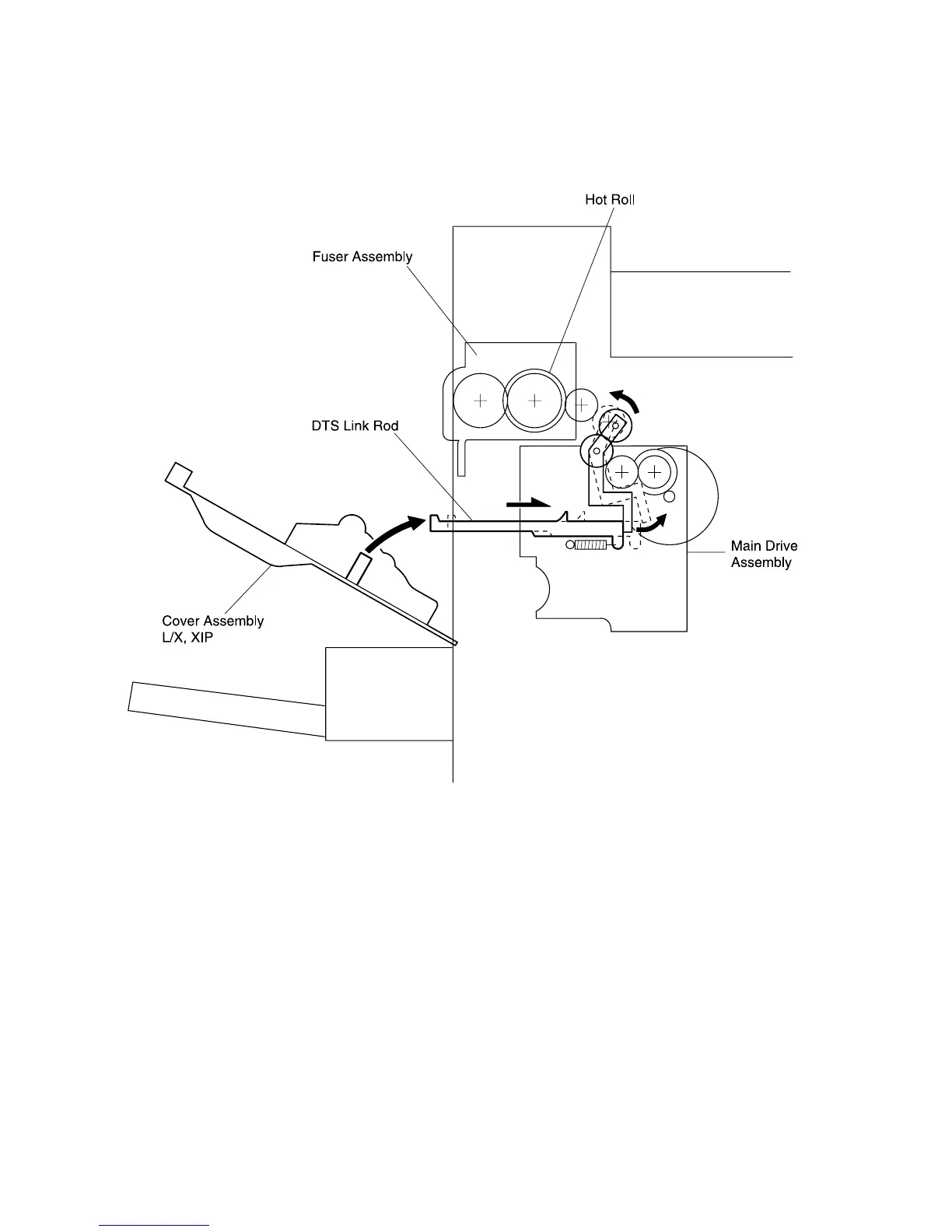 When the Left Upper Cover is closed, the DTS Link Rod pushes the Fuser Drive