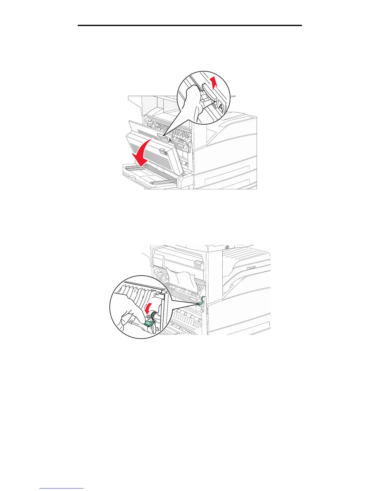 green lever to make it easier to remove the media. Make sure all paper fragments are removed.